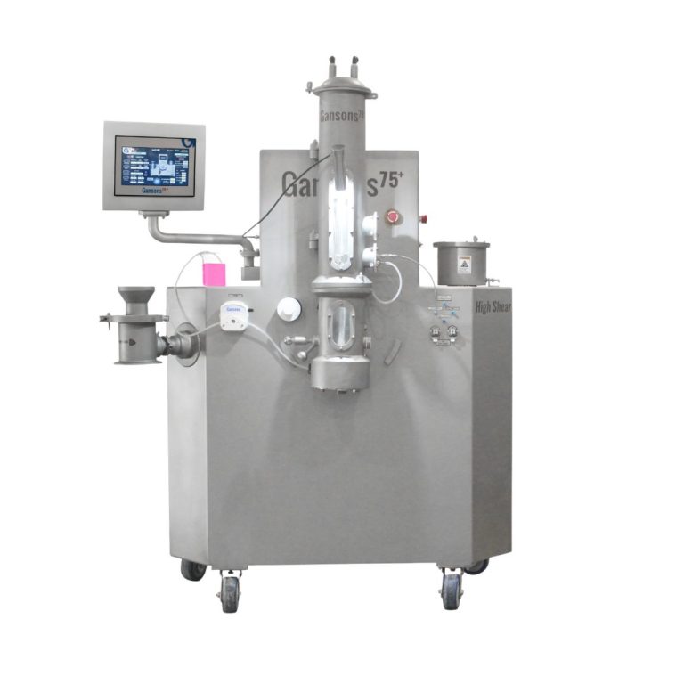 Geared to handle lots of 50g to 2kg. Featuring the R-mini nozzle, the laboratory-scale of Gansons’ proprietary GHPN IIIRD nozzle, Gansons OEM peristaltic pump, Gansons proprietary baffles and signature smooth, perforated pan.