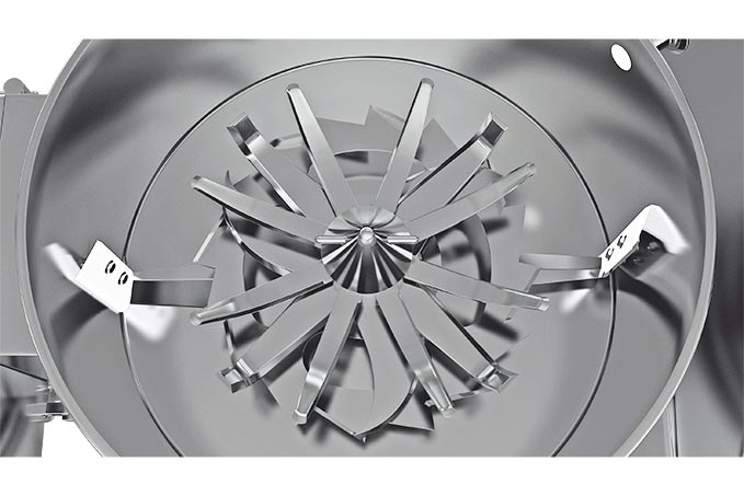 - The 4-C blade ensures uniform binder distribution throughout the product mass.